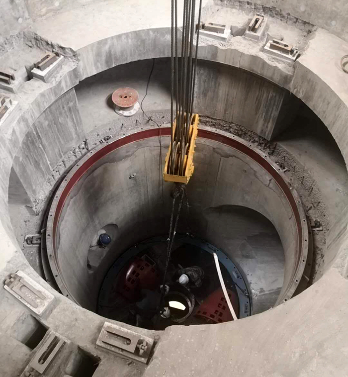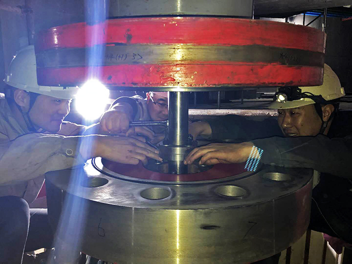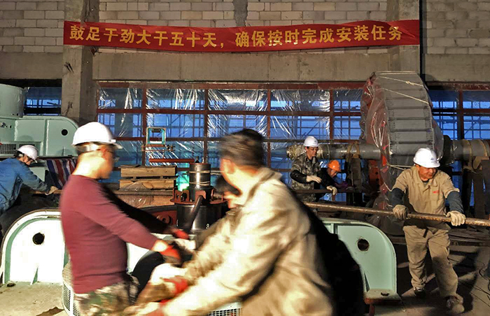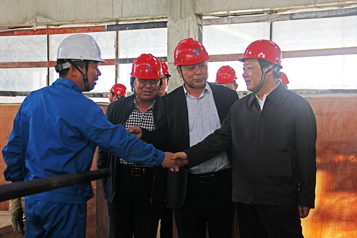 謝正義首先察看了泵站主廠房、機(jī)電安裝作業(yè)現(xiàn)場,他說,我曾經(jīng)在腦海中想象工程的規(guī)模,但沒想到現(xiàn)場是如此壯觀雄偉。在正在進(jìn)行的3號機(jī)組盤車現(xiàn)場,謝書記與機(jī)安分公司黨支部書記王建平等同志親切握手,向現(xiàn)場加班的工人師傅們表示感謝和慰問。謝書記向安裝負(fù)責(zé)人陸建江同志了解盤車工序的過程和目的,當(dāng)時愛祥同志介紹機(jī)工老師傅陳庭霞同志,并介紹大師在安裝時通過聽、看、摸、測等手段發(fā)現(xiàn)問題解決問題時,謝書記夸贊:不得了,真厲害。