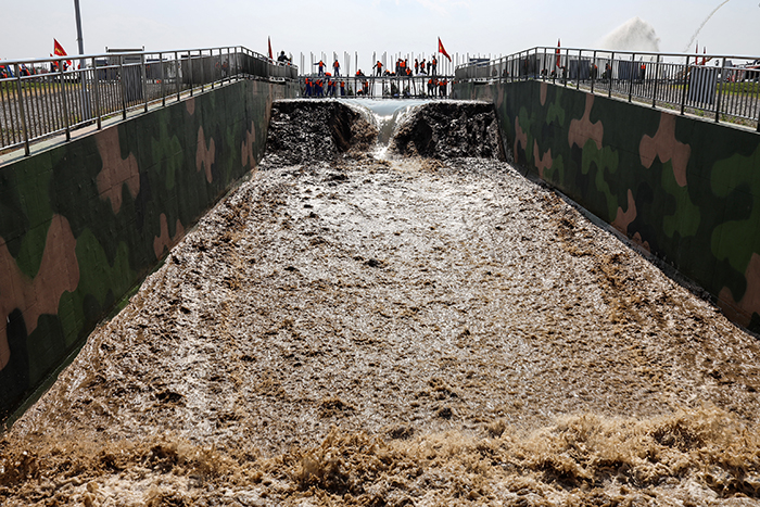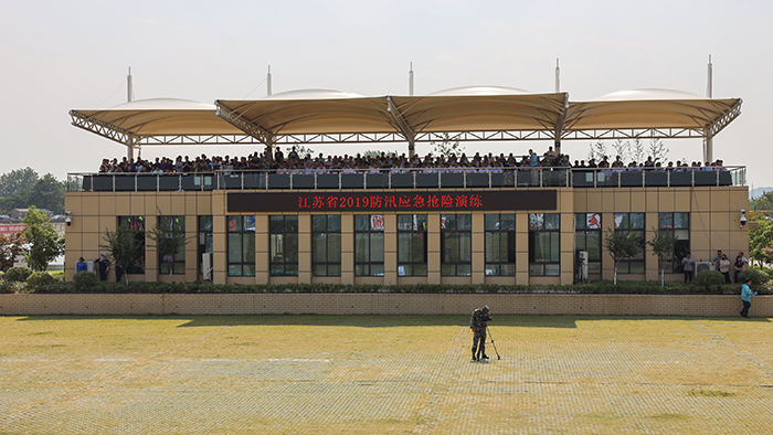 此次演練結(jié)合江蘇省防汛搶險實(shí)際,現(xiàn)場模擬南京長江河段水位持續(xù)上漲、長江堤防出現(xiàn)多處險情、大量群眾被困情況下的應(yīng)急搶險救援場景。演練涵蓋應(yīng)急預(yù)案演練、專業(yè)科目演練、應(yīng)急救援救災(zāi)演練、搶險新技術(shù)、新裝備展示等四大類34個科目內(nèi)容。