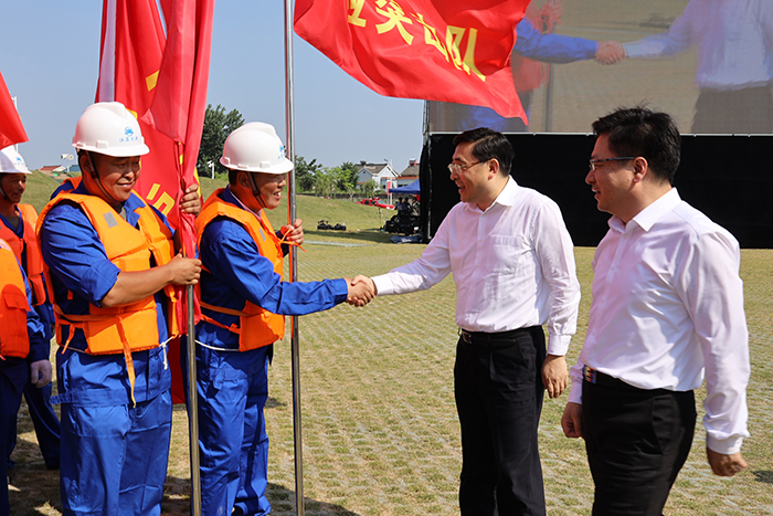 6月10日~14日,省防汛防旱指揮部在南京六合舉行防汛應(yīng)急搶險演練。14日下午,省防汛防旱指揮部常務(wù)副指揮長、省政府副省長費(fèi)高云現(xiàn)場觀摩演練并講話。我公司防汛搶險突擊隊(duì)全程參加訓(xùn)練和演練,并以嫻熟的專業(yè)技能順利完成了演練科目,提高了素質(zhì),展現(xiàn)了形象。公司領(lǐng)導(dǎo)時愛祥、顧明如、顧永明、湯應(yīng)來應(yīng)邀觀摩了14日的演練活動。