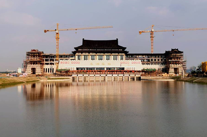 瓜洲泵站工程安裝6臺(tái)機(jī)組,葉輪直徑3米,單泵設(shè)計(jì)流量28.4立方米每秒,配套電機(jī)功率1600千瓦,總裝機(jī)容量9600千瓦,同時(shí)運(yùn)行抽排水量可達(dá)170立方米/秒,是揚(yáng)州史上單體規(guī)模最大的泵站工程。