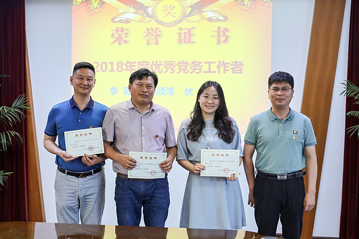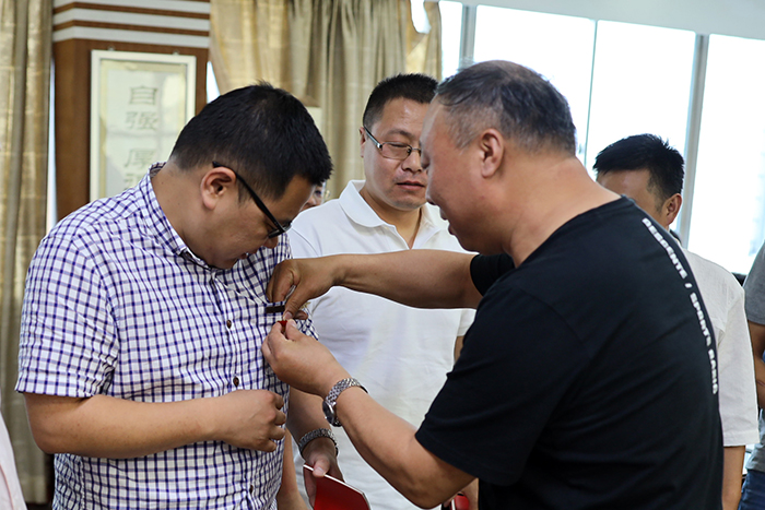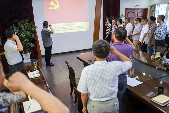 時(shí)愛祥帶領(lǐng)8名新黨員宣誓,并為其發(fā)放《黨章》、佩戴黨徽。同時(shí),還表彰了一批先進(jìn)黨支部、優(yōu)秀黨員、優(yōu)秀黨務(wù)工作者。
