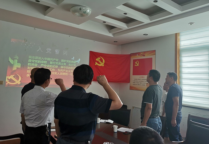 黨總支副書記萬春耕帶領(lǐng)新黨員和與會全體黨員重溫了入黨誓詞,通過重憶入黨經(jīng)歷、分享成長經(jīng)歷、重問入黨初心,黨員同志進一步堅定了自己的初心和使命。