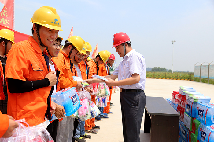 731日上午,揚州市總工會黨組成員、副主席陳錫朝率隊趕赴我公司位于常州的省重點水利工程界牌樞紐,慰問了施工現(xiàn)場500余名一線員工,給他們送去了防暑降溫用品及職工勞動保護手冊,讓高溫下堅守崗位的一線員工切實感受到工會組織的關(guān)愛。公司黨委副書記、工會主席姜啟生陪同慰問。