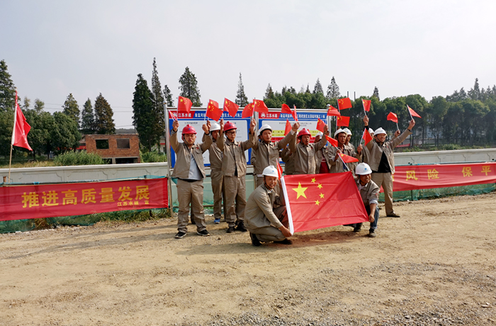 太滆運河施工I標擋墻施工隊慶祝建國70周年