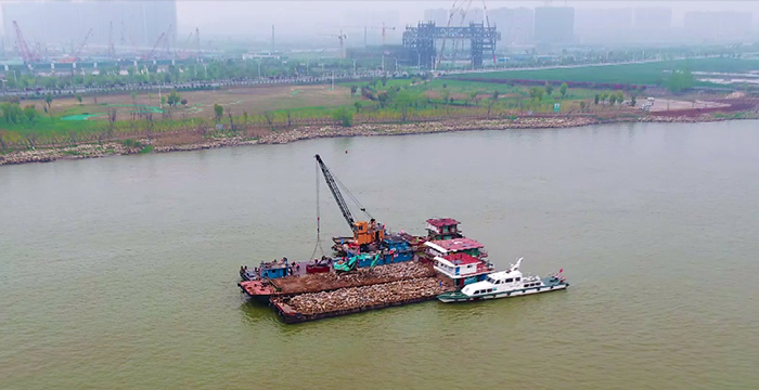 該工程于2019年3月1日正式開工,10月21日完成全部水下賽克格賓的拋投。工程采用了網(wǎng)箱吊運(yùn)開底拋投工藝施工,嚴(yán)格按照施工圖紙及規(guī)范進(jìn)行拋?zhàn)?、拋?zhǔn)、拋勻控制。整個施工過程中,實(shí)施項(xiàng)目負(fù)責(zé)人帶班制,對工程進(jìn)行網(wǎng)絡(luò)化管理,合理安排施工進(jìn)度,嚴(yán)抓安全管理,項(xiàng)目被南京市水務(wù)建設(shè)工程有限公司評為安全文明施工“先進(jìn)單位”。