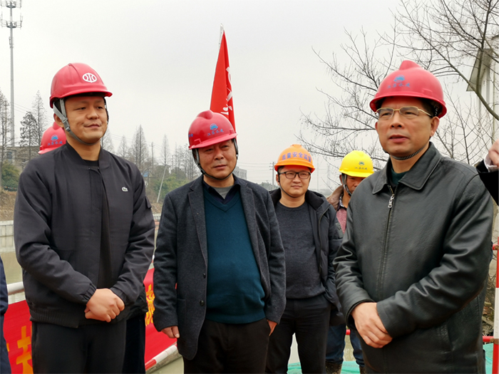 2020年1月2日,省水利工程建設(shè)局黨組書記、局長蔡勇帶隊(duì)到我公司太滆運(yùn)河一標(biāo)工地開展安全生產(chǎn)監(jiān)督檢查。常州市水利局副局長趙亮、武進(jìn)區(qū)水利局副局長朱獻(xiàn)軍、武進(jìn)區(qū)新孟河建設(shè)處主任惲文榮、我公司董事長時(shí)愛祥陪同檢查。