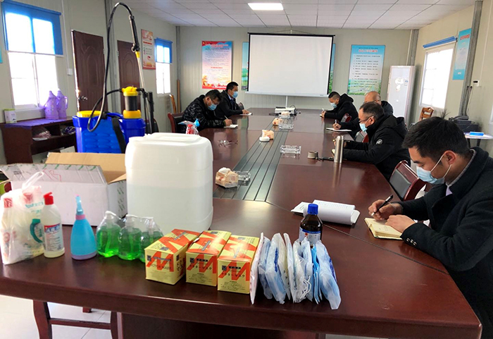 受疫情影響,該工程工期已被延誤半個多月。2月14日,為盡快組織復(fù)工,項目部第一批人員克服困難抵達工地。到工后,他們先了解地方管控要求和復(fù)工審核政策,摸排進場人員信息,在地方管理部門和建設(shè)處的支持下,積極做好復(fù)工準(zhǔn)備。項目部多方籌集,購置了測溫儀、口罩、酒精、消毒液、洗手液等防疫物資,設(shè)置了隔離間,租用了兩間移動廁所作為隔離廁所。工地和項目部入口均設(shè)立了登記處,入門必須測溫、登記。食堂實行分餐制,每日均有專人對辦公區(qū)、生活區(qū)和工人宿舍進行消毒。