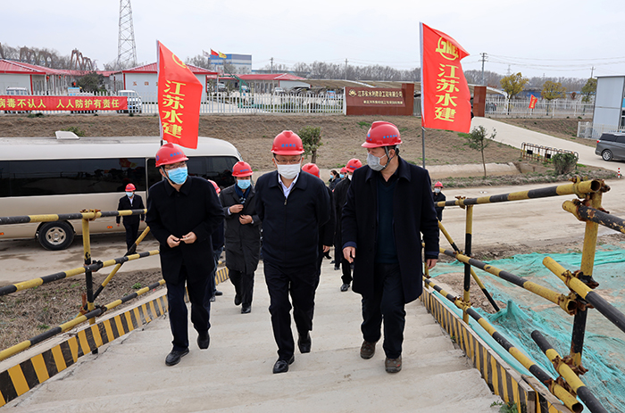 26日,趙世勇副省長赴太湖治理新孟河界牌水利樞紐工程調(diào)研疫情防控和復工工作。省水利廳廳長陳杰、副廳長朱海生、鎮(zhèn)江市、丹陽市有關負責同志陪同調(diào)研。我公司董事長時愛祥、總經(jīng)理助理湯應來等參加活動