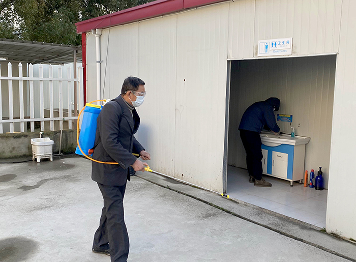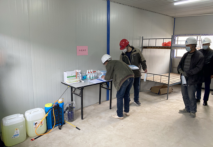 返蘇人員嚴(yán)格執(zhí)行“五要五不要”。項(xiàng)目部安排專人做好務(wù)工人員信息排查工作,利用短信查詢每一位員工的個(gè)人活動(dòng)軌跡、簽訂承諾書,嚴(yán)防輸入性疫情風(fēng)險(xiǎn)。工地和項(xiàng)目部實(shí)行封閉管理,只留一個(gè)出入口,設(shè)門衛(wèi)24小時(shí)值班,對(duì)進(jìn)出人員實(shí)行實(shí)名制登記和體溫檢查;食堂實(shí)行分餐制;及時(shí)發(fā)放口罩、防護(hù)鏡等個(gè)人防護(hù)作品;配備專人負(fù)責(zé)每天每人測(cè)量體溫不少于2次,檢查是否有發(fā)熱、咳嗽、氣促等呼吸道感染癥狀。持續(xù)開(kāi)展工地環(huán)境整治,安排專人對(duì)辦公、生活區(qū)和工人宿舍進(jìn)行環(huán)境衛(wèi)生清理和消毒滅菌。