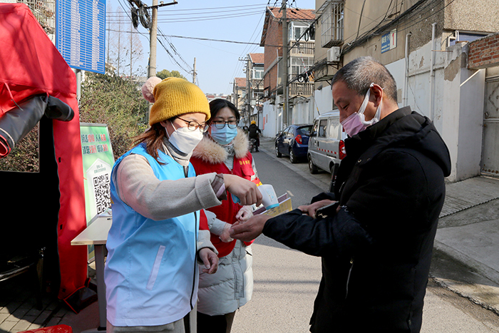簽約儀式結(jié)束后,來自各分(子)公司、各部門的近30名巾幗志愿者、青年志愿者戴起了紅袖章,穿上了紅馬甲,立刻投入到社區(qū)防控卡口的值守工作中。春寒料峭,一天的值守工作雖不難卻也不易。在社區(qū)工作人員的幫助和指導(dǎo)下,志愿者們?yōu)樾^(qū)出入居民測量體溫,引導(dǎo)其用微信掃描出行碼、填寫健康動態(tài)二維碼、登記外來人員信息,用實(shí)際行動投入到抗疫一線。
