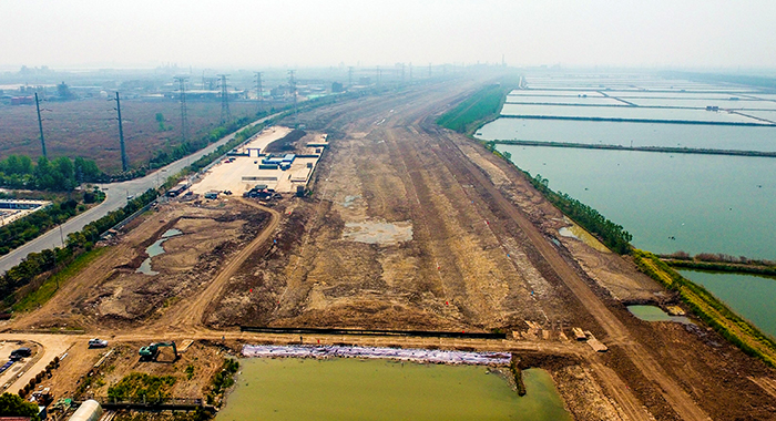 燒香支河(板橋段)位于連云港市連云區(qū)板橋街道境內(nèi),是連云港市臨港產(chǎn)業(yè)區(qū)大型工業(yè)區(qū)和重要的海洋經(jīng)濟(jì)區(qū),具有防洪除澇、自排、蓄水等能力。工程因受疫情影響,開工時(shí)間推遲了一月。為確保按時(shí)完成水下工程階段任務(wù),項(xiàng)目部加快進(jìn)度,增加機(jī)械量,同時(shí)嚴(yán)抓施工質(zhì)量、施工安全,做到安全、質(zhì)量、進(jìn)度齊頭并進(jìn)。