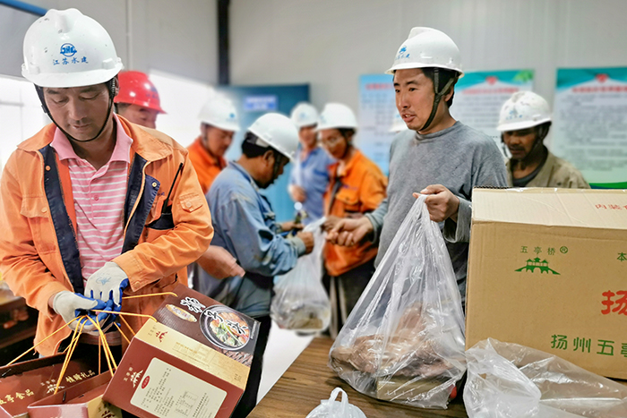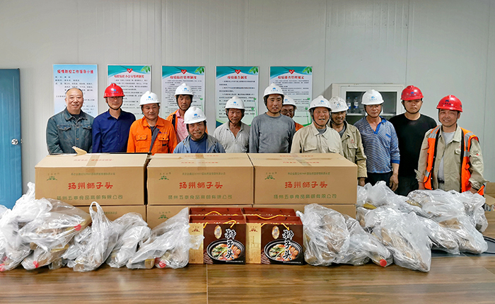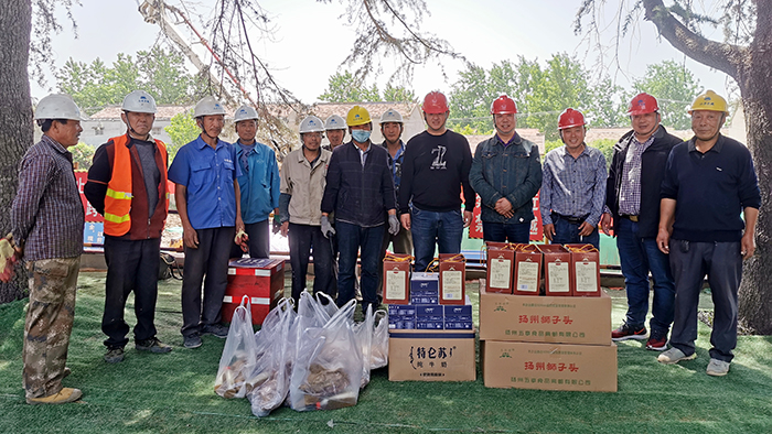 從年后復工至今,公司多個項目一直處于緊張忙碌的搶工之中,向著“530”重大節(jié)點目標邁進。為鼓舞士氣,加強項目建設(shè)過程中的安全監(jiān)督工作,公司工會在“五一”前后深入項目一線指導工作、慰問員工。公司黨委副書記、副總經(jīng)理、工會主席姜啟生帶隊,分別來到定波水利樞紐工程,以及新孟河流域的界牌樞紐工程、常州新北區(qū)河道施工III標、北干河施工II標,宿遷船行灌區(qū)施工3標等項目,為復工以來一直堅守工作崗位的項目管理人員、工友們送去親切的關(guān)懷和誠摯的慰問,牛奶、八寶粥、獅子頭、鹽水鵝等富有揚州特色的慰問品,讓他們在奮力搶工之余能夠品嘗到“家”的味道、感受到“家”的溫暖。