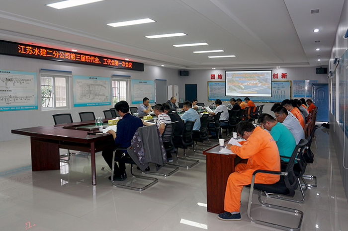6月16日,二分公司第三屆職代會、工代會第一次會議在定波水利樞紐項目部會議室召開。會議由分公司副經(jīng)理、工會主席陳俊同志主持。公司領導姜啟生、工會副主席李娟出席會議。