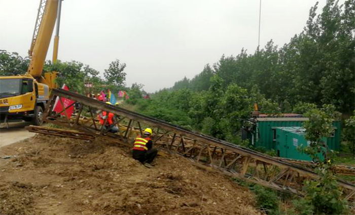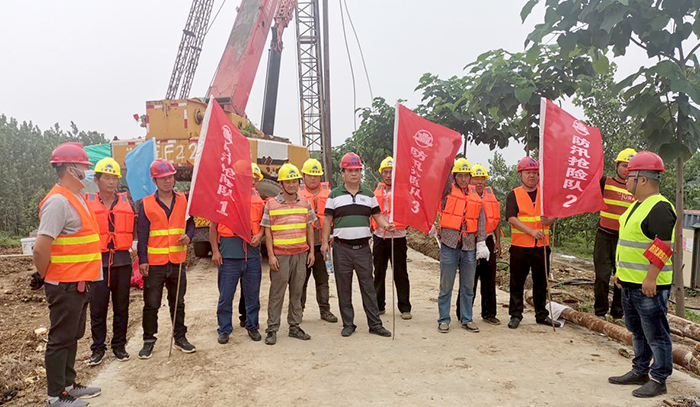 上午9時30分,演練正式開始,現(xiàn)場項目安全員監(jiān)管,三軸小直徑攪拌樁樁機操作人員立即開始對樁機進(jìn)行拆卸。拆卸完成后,樁機配件吊裝轉(zhuǎn)運至堤外臨時停放點。整個演練歷時4小時,圓滿完成。