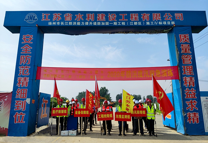 7月16日,公司基礎(chǔ)工程分公司承建的揚(yáng)州市長江防洪能力提升堤防加固一期工程(江都區(qū))施工Ⅳ標(biāo)、施工Ⅴ標(biāo)及揚(yáng)州市長江防洪能力提升堤防加固二期工程(江都區(qū))施工Ⅱ標(biāo)項(xiàng)目共同在圣容涵東側(cè)江堤開展了防洪應(yīng)急演練活動。項(xiàng)目部管理人員及各作業(yè)班組共計(jì)40人參加了演練活動。