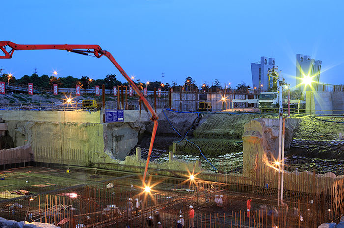 ——項目部帶領全體建設者,與時間賽跑,完成了一個又一個節(jié)點,贏得了一個又一個勝利。在二線船閘工程的技術最難點上閘首施工中,施工人員頂高溫,冒酷暑,歷時五天五夜,晝夜連續(xù)施工,完成4000立方米的上閘首底板澆筑任務,為高溫下大體積混凝土底板澆筑積累了經驗。正是有了對質量的嚴格要求,結出了水利工程的碩果;正是因了施工的一絲不茍,鑄就了水利藝術的精品。