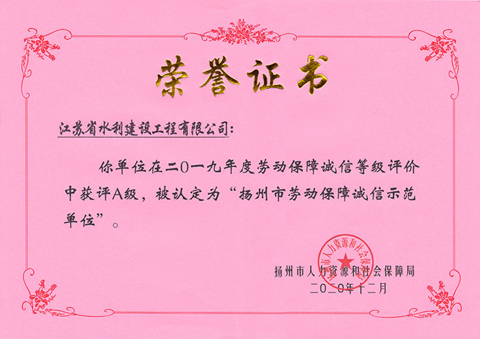 近日,經(jīng)揚(yáng)州市人力資源和社會保障局考核評定,公司被授予“2019年度勞動保障誠信示范單位”。