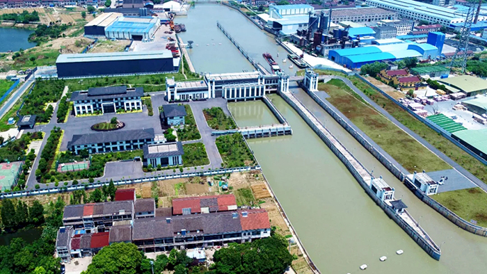 公司再次承建了新孟河延伸拓浚工程“龍頭”——界牌樞紐工程,以及常州新北區(qū)、太滆運河等10個河道項目。公司秉承建設精品工程的目標,率先在界牌樞紐工程中開展施工現(xiàn)場標準化建設,建成了混凝土、鋼筋加工場等高標準的工廠化生產系統(tǒng),并引入了浸入式三維體驗、安全文化學習等標準化學習場館,全面提升的工程的施工品質。該工程已于2020年6月通過通水驗收。