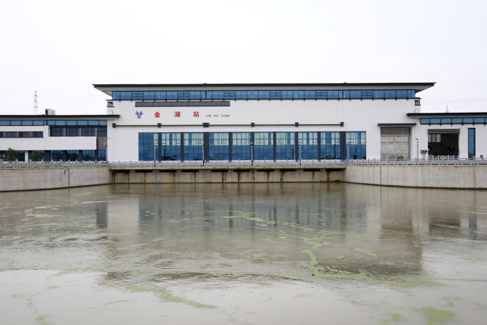 金湖站國內(nèi)最大的貫流泵機(jī)組開足馬力