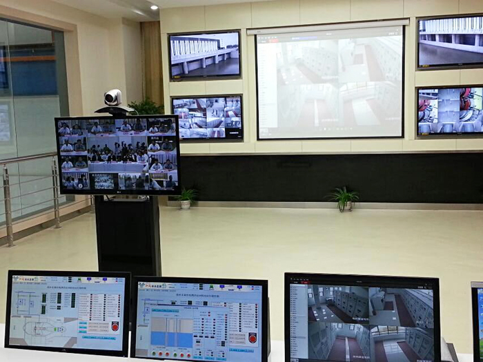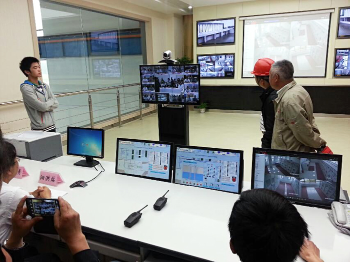國調(diào)辦李鵬程司長在金湖站主控室內(nèi)與泗洪站視頻對話