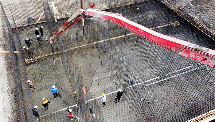 2月5日上午,經(jīng)過多方共同努力,鋼筋、模板、預(yù)埋件等工序按時(shí)按質(zhì)完成,項(xiàng)目部在自檢合格以后,報(bào)請監(jiān)理驗(yàn)收,所有檢測項(xiàng)目一次驗(yàn)收合格,具備澆筑條件。13點(diǎn),2輛汽車泵同時(shí)開倉澆筑,經(jīng)過6個(gè)小時(shí)不間斷施工,當(dāng)晚19點(diǎn)完成底板混凝土澆筑任務(wù),方量480立方米,比原計(jì)劃足足提前3天。