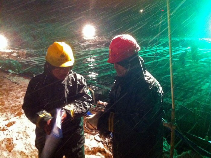 為了實(shí)現(xiàn)“531”工期目標(biāo),公司前后方協(xié)同作戰(zhàn),一切從講政治的高度出發(fā),集中優(yōu)勢(shì)資源,全面加大投入。朱學(xué)林董事長(zhǎng)與項(xiàng)目部員工一起過(guò)春節(jié),多次到工地研究落實(shí)方案,為大家鼓勁打氣;夏國(guó)春總經(jīng)理、陳勤副總經(jīng)理等領(lǐng)導(dǎo)多次到工地研究解決技術(shù)難題,督查進(jìn)度、質(zhì)量和安全生產(chǎn)工作;常務(wù)副總經(jīng)理時(shí)愛(ài)祥同志長(zhǎng)駐工地,協(xié)調(diào)全公司資源保證搶工需要;黨委副書(shū)記、工會(huì)主席姜啟生及時(shí)到工地一線慰問(wèn),送來(lái)組織的溫暖和關(guān)懷;公司工程部、安全技術(shù)部、財(cái)務(wù)部、人力資源部等職能部門(mén),水機(jī)公司、機(jī)安分公司、設(shè)備租賃分公司等兄弟單位與泗陽(yáng)閘項(xiàng)目部齊心協(xié)力,共同拼搏。特別是泗洪站、太浦閘、金湖站、淮南取水工程等多個(gè)兄弟項(xiàng)目部,在自己工期也十分緊張的情況下,抽調(diào)了150多名熟練工人,參加泗陽(yáng)閘施工大會(huì)戰(zhàn),奏響了一篇團(tuán)結(jié)奮戰(zhàn)的和諧樂(lè)章。泗陽(yáng)閘水下工程的如期完成,又一次體現(xiàn)了公司不折不扣完成廳重點(diǎn)工程任務(wù)的執(zhí)行力和效率,體現(xiàn)了公司強(qiáng)大的綜合作戰(zhàn)能力,體現(xiàn)了全局一盤(pán)棋的凝聚力和創(chuàng)造力。