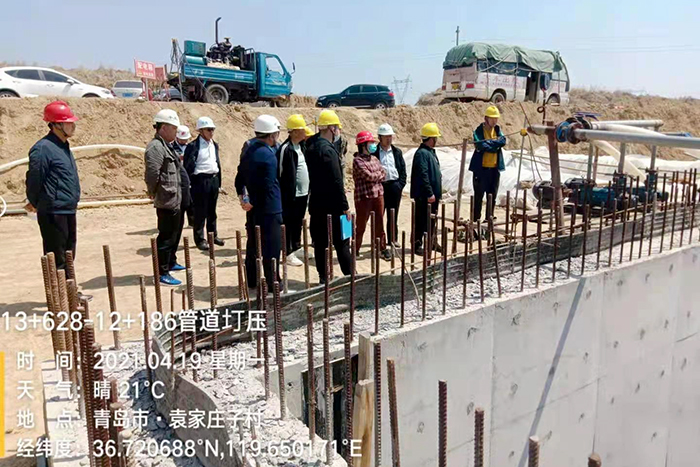 4月19日,青島市黃水東調(diào)承接工程平度二標(biāo)段輸水管線順利通過管道試壓驗(yàn)收。青島市水利質(zhì)監(jiān)站、項(xiàng)目法人、代建單位、監(jiān)理單位,共同對本段管道試壓工作進(jìn)行聯(lián)合驗(yàn)收。