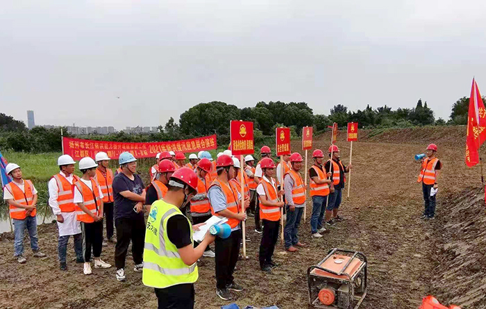 6月26日上午,基礎(chǔ)工程分公司在揚(yáng)州市長江防洪能力提升堤防加固二期工程(江都區(qū))施工 III標(biāo)開展了防洪應(yīng)急演練,一期工程施工IV-V標(biāo)、二期工程II標(biāo)聯(lián)合參與了演練。