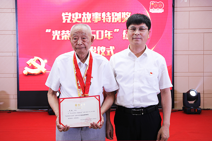 活動現(xiàn)場,公司黨委副書記姚立宏為新黨員發(fā)放黨徽、黨章、學習書籍,黨委書記顧明如帶領(lǐng)新黨員宣誓?;顒舆€表彰了一批先進黨支部、優(yōu)秀黨員、優(yōu)秀黨務(wù)工作者。視頻滾動展示了表彰的集體和個人的風采;優(yōu)秀共產(chǎn)黨員王琰、優(yōu)秀黨務(wù)工作者伏洲分別上臺發(fā)言。顧明如為離休干部葉榮佩戴了“光榮在黨50年紀念章”。
