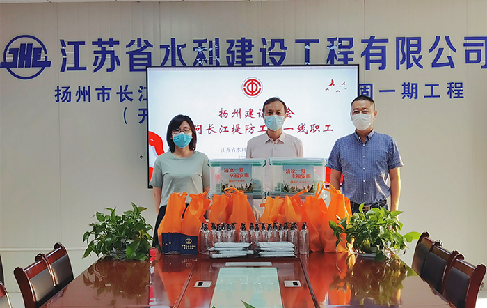 9月8日下午,揚州市建設工會范華主任在公司工會主席李娟陪同下,來到長江防洪能力提升加固一期工程(開發(fā)區(qū))施工Ⅳ標項目部,看望、慰問一線職工,為大家送去市總工會定制的“清涼一夏”安康包、安全生產(chǎn)法知識手冊以及防疫物資等。