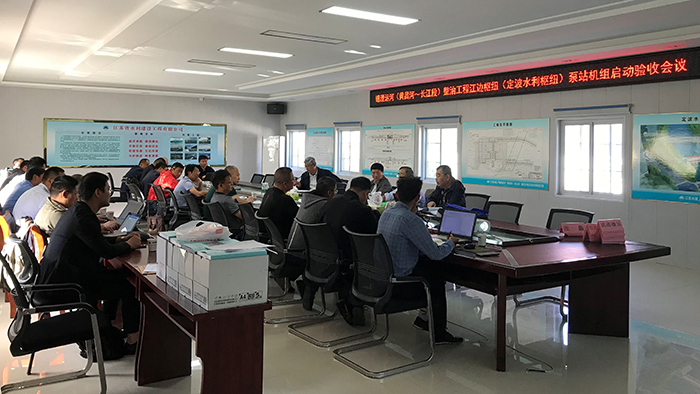 泵站機(jī)組啟動(dòng)驗(yàn)收會(huì)議由無錫市水利局主持,驗(yàn)收委員會(huì)通過察看現(xiàn)場并抽取兩臺(tái)機(jī)組開機(jī)測試水泵運(yùn)行效果,查閱工程檔案資料,聽取建設(shè)、設(shè)計(jì)、施工、監(jiān)理、廠家、檢測、質(zhì)量和安全監(jiān)督單位、專家組組長匯報(bào),認(rèn)為定波水利樞紐泵站機(jī)組已完成批復(fù)建設(shè)內(nèi)容,工程質(zhì)量與安全均符合設(shè)計(jì)及規(guī)范要求,機(jī)組啟動(dòng)試運(yùn)行正常,一致同意泵站通過機(jī)組啟動(dòng)驗(yàn)收。