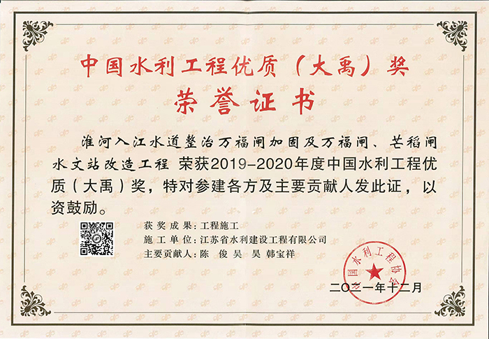 2019-2020中國水利工程優(yōu)質(zhì)(大禹)獎